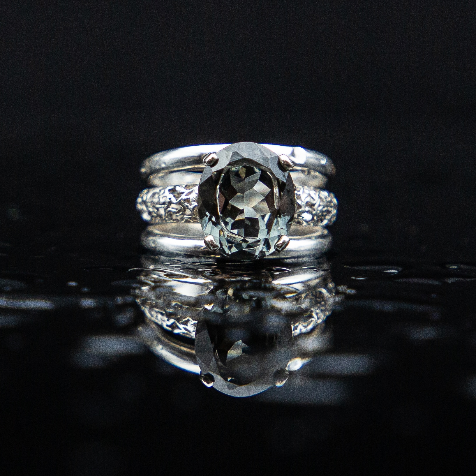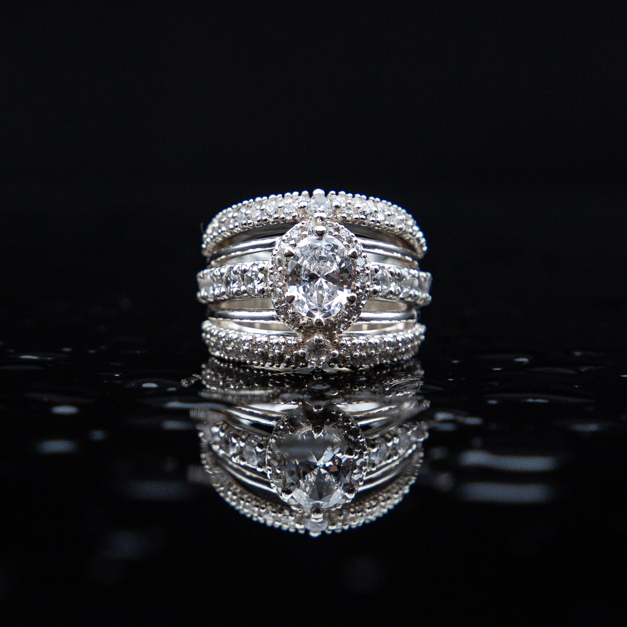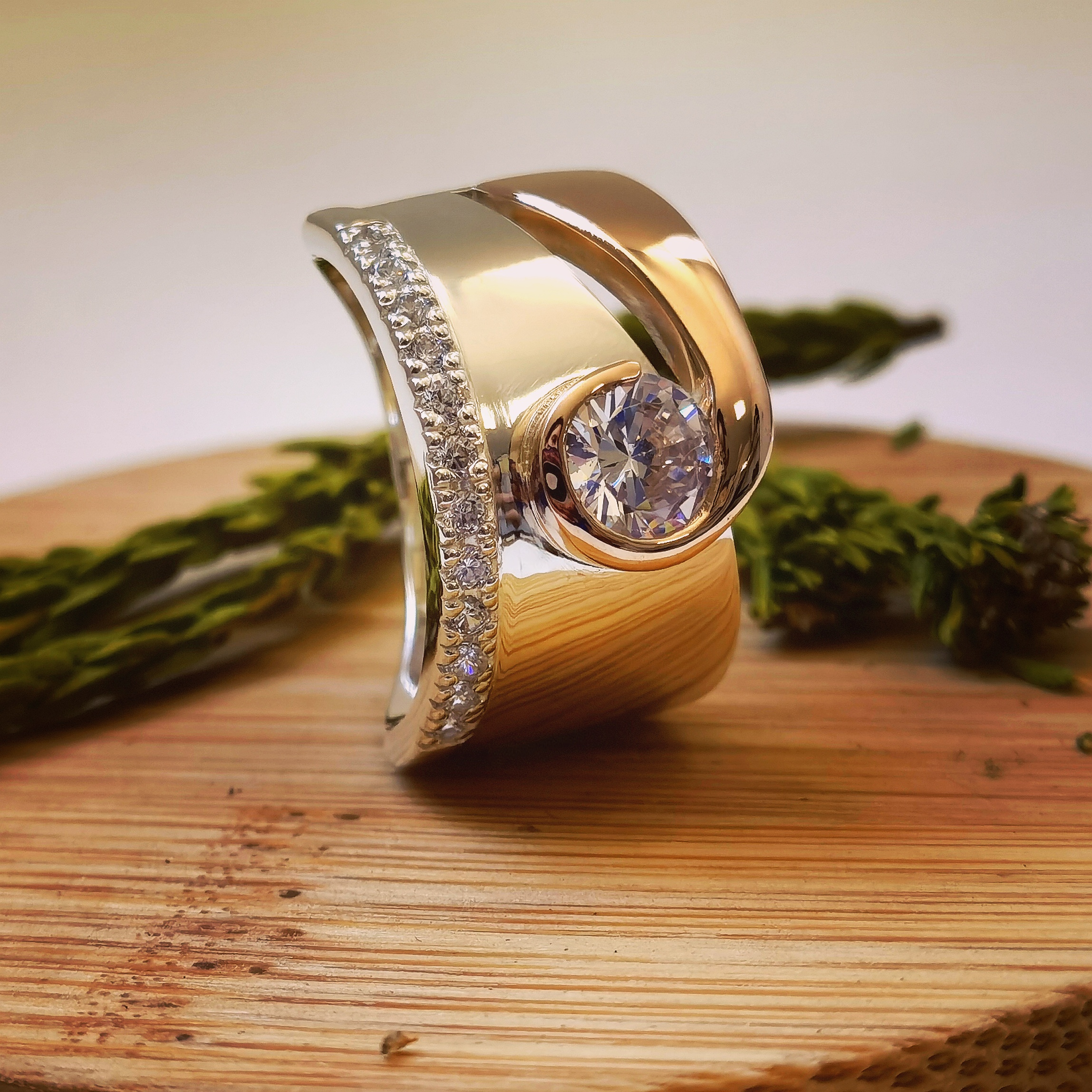 Sterling silver ring with moissanites