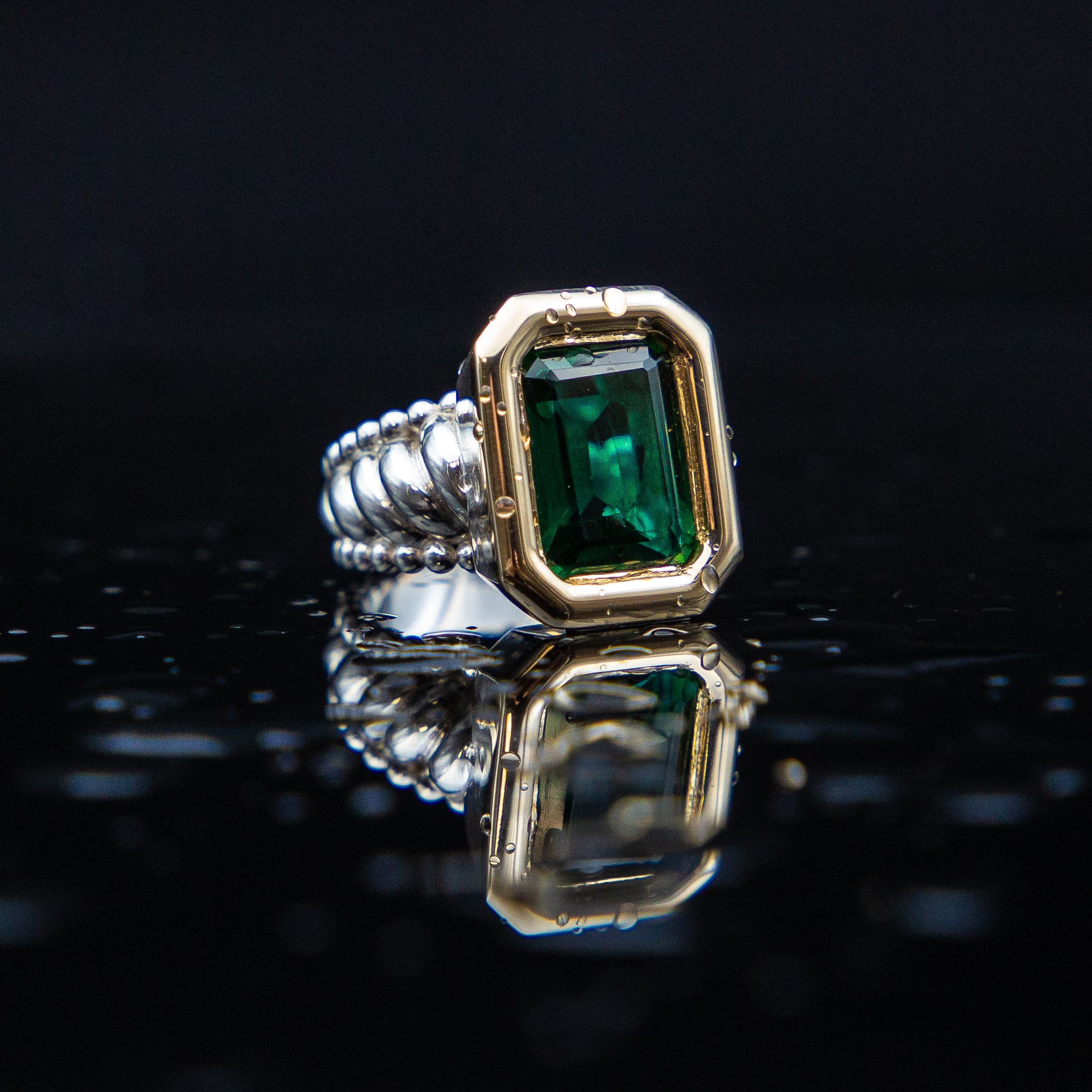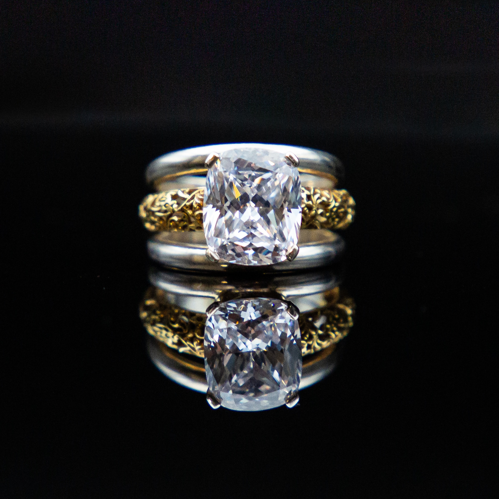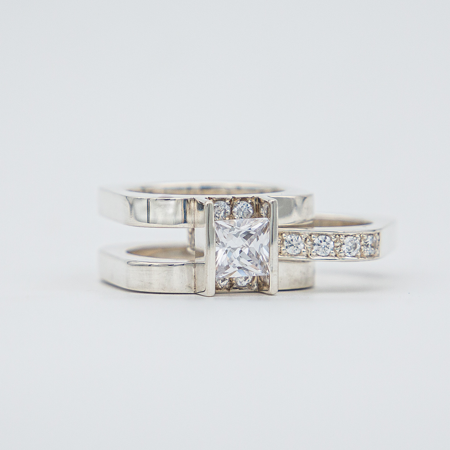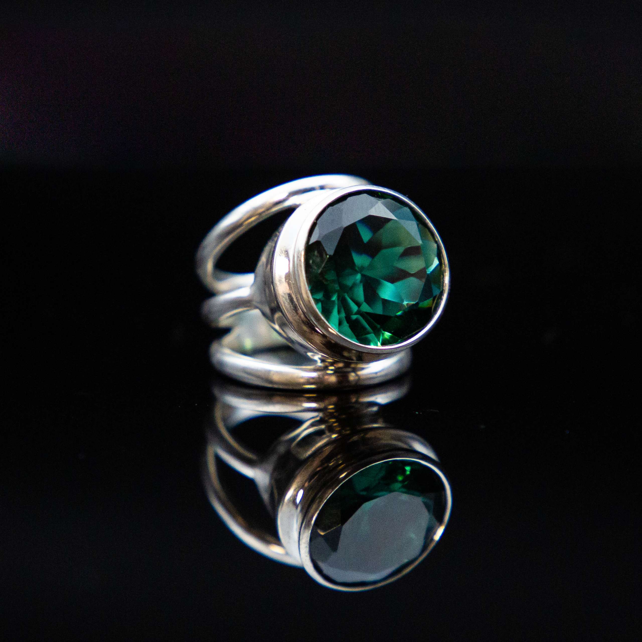 Sterling silver ring with moissanites
