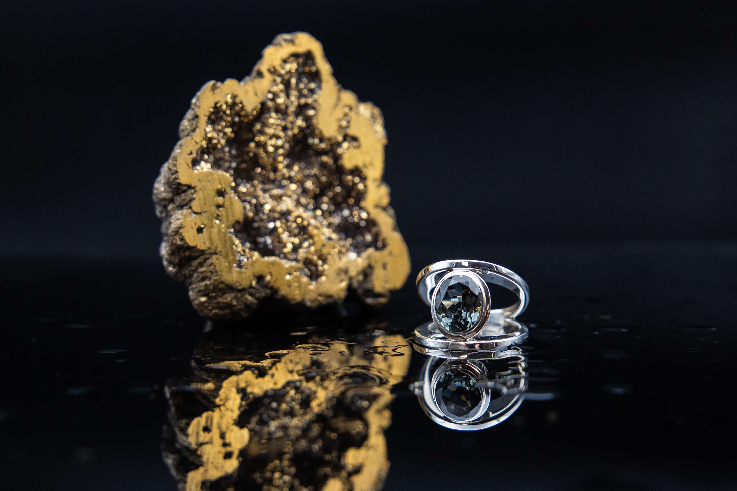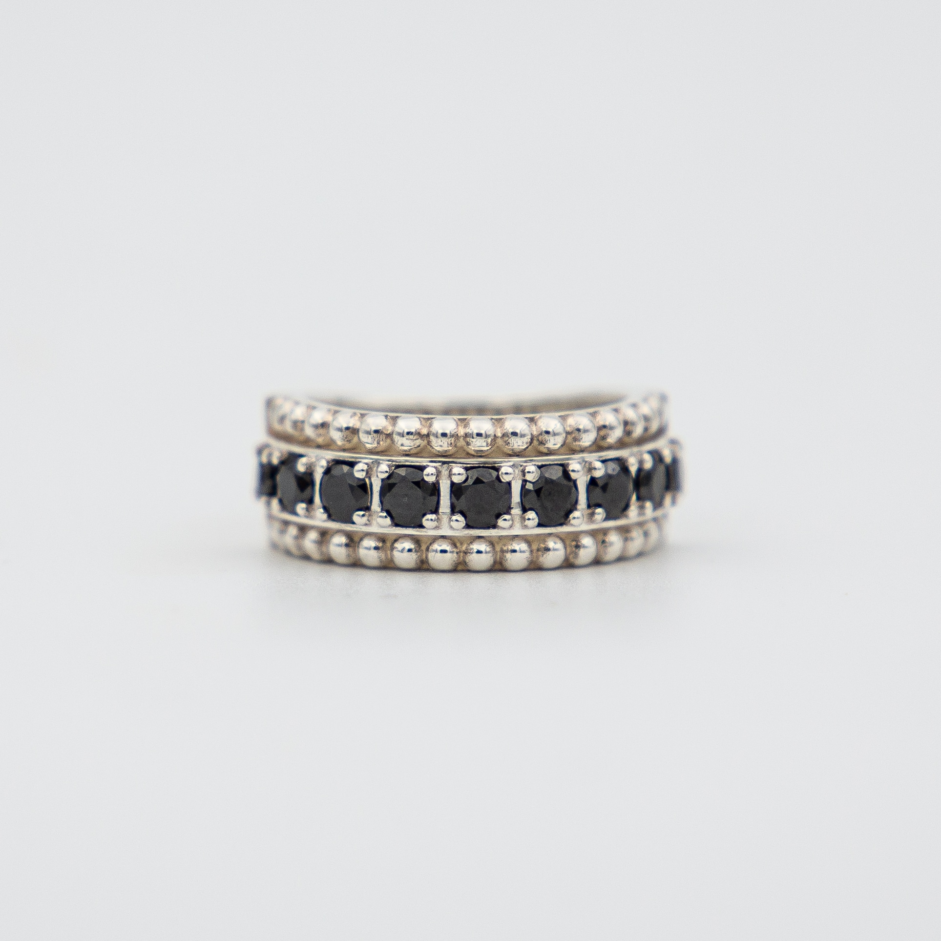 Sterling silver ring with black cubic zirconias