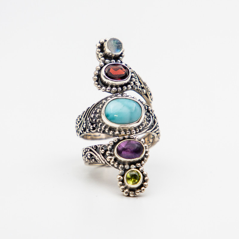 Sterling Silver 5 stone spiral ring with real gemstones.