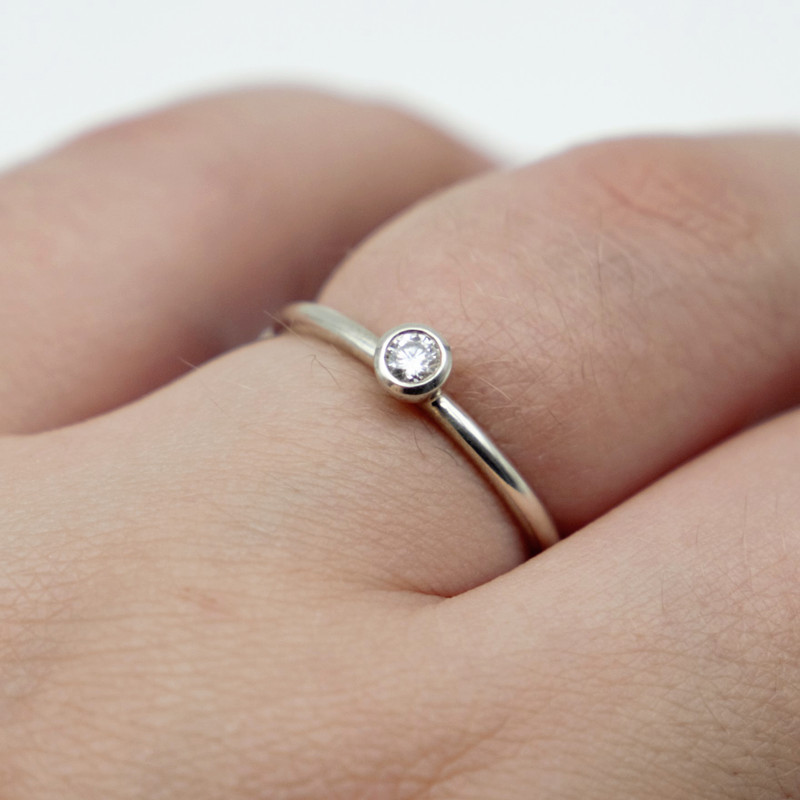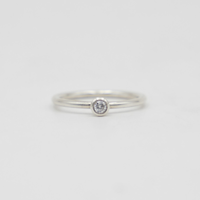 Custom-crafted in 925 sterling silver, this minimalist ring features a round white moissanite in a sleek tube setting. Delicate, durable, and brilliantly sparkling—perfect for stacking or everyday elegance.