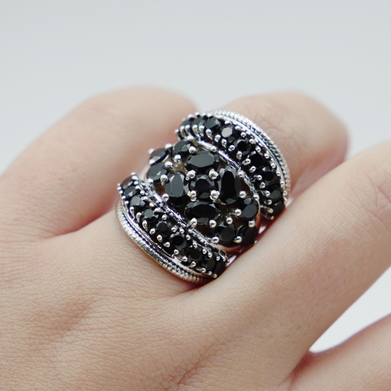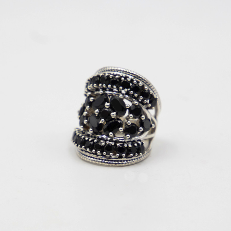 Sterling silver black spinel cluster ring