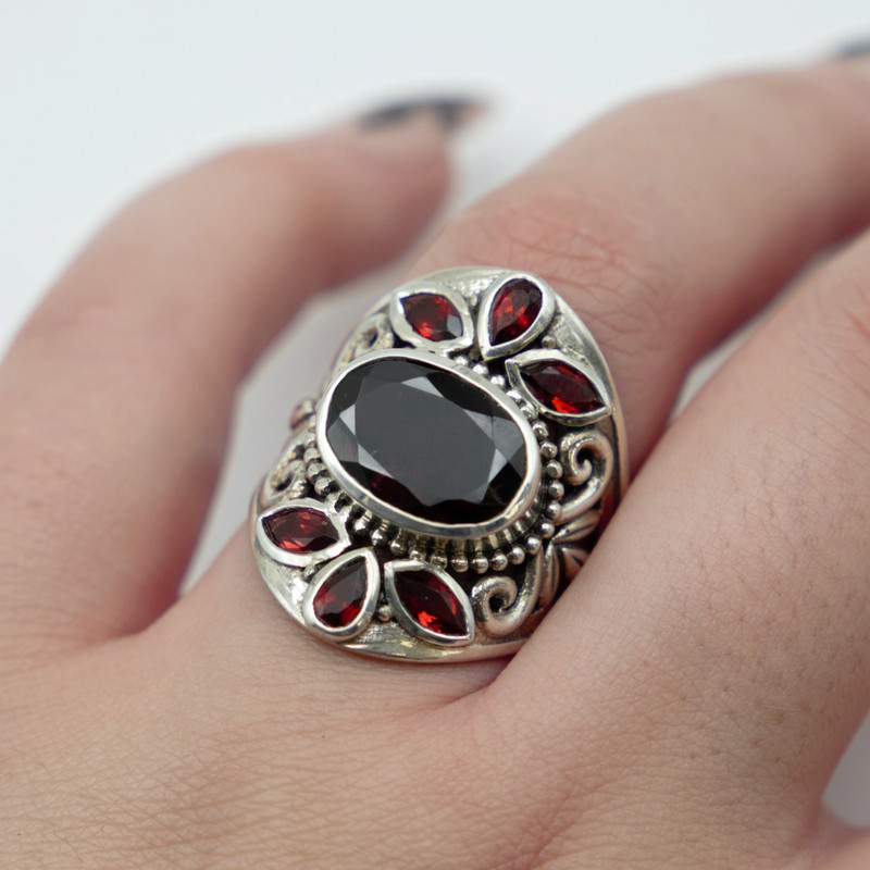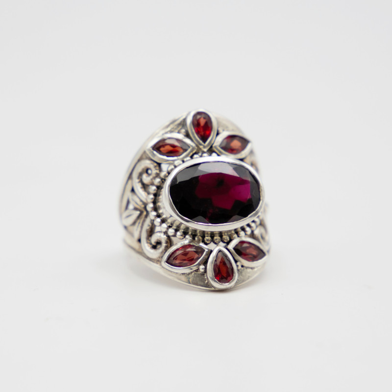 Sterling silver ring with garnet.
