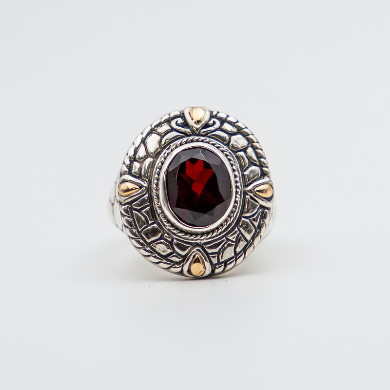 Sterling silver and 18ct yellowgold ring with garnet.