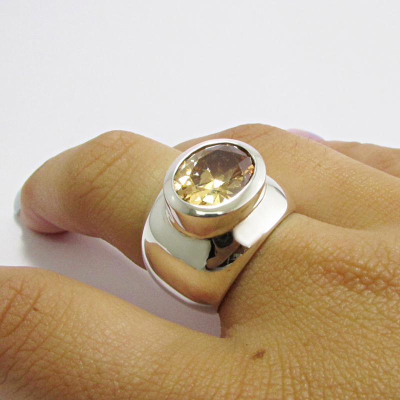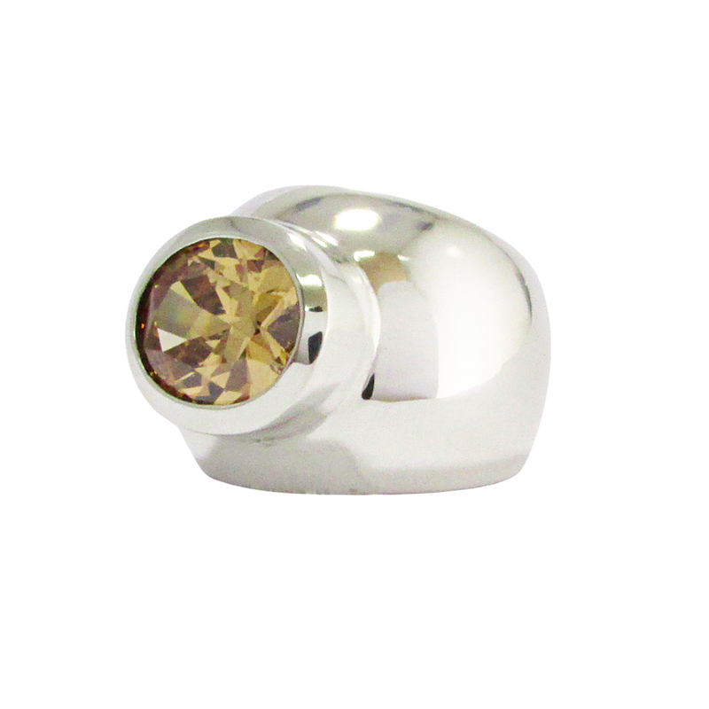 Sterling silver ring with a champagne colour cz.